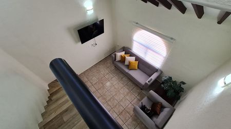 Recibidor. Amplia sala y comedor independiente. Cocina integral. Una recamara en planta baja con closet y baño completo. Amplia sala y comedor independiente. Dos recamaras en planta alta con closet y baño completo. Patio trasero con área de lavado. Estacionamiento para 2 vehículos.