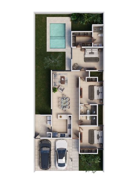 Ponemos a su disposición 352 casas residenciales dentro de la Privada Gran Bosco ubicada en la prestigiosa carretera de Chicxulub.
