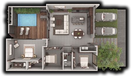 Es un proyecto con 19 residencias de lujo de uno y dos niveles, cada una con 3 recámaras y piscina privada. Cuenta con áreas comunes exclusivas para los residentes de Buluc Residences.