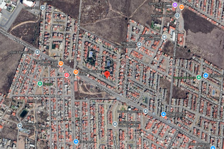 Casa habitación ubicada en una zona comercial, donde se pueden encontrar restaurantes y servicios como hospitales y escuelas a su alrededor.