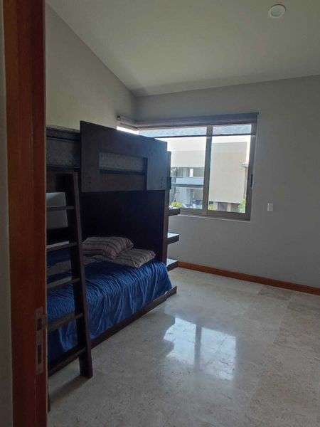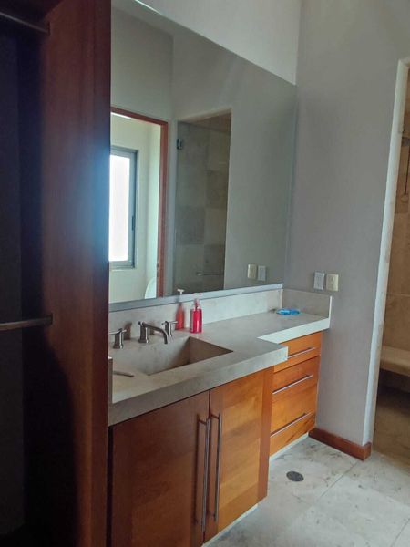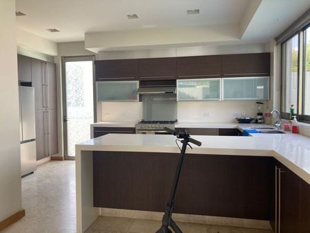 P.B: estancia sala-comedor con techo doble altura, cocina equipada, estudio o recámara, baño completo. Amplia terraza, jardín con alberca y jacuzzi. Cuarto de servicio y área de lavado.