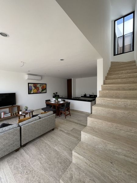 modernista y cálido ,que llena de luz cada espacio de la casa. Ubicados en una excelente zona de Cholul con acceso a todos los servicios.