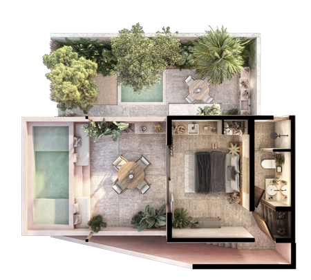 • Rooftop con alberca, recámara, baño y Cocineta